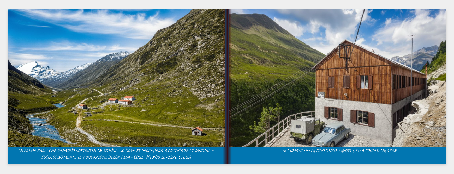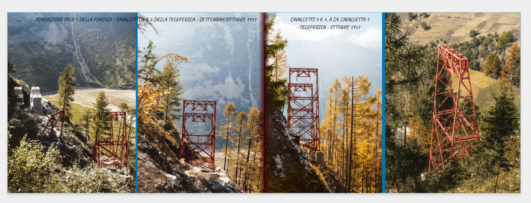 Nelle pagine troverete diverse viste del cantiere e degli impianti teleferici e funiviari (molte delle quali nascoste negli archivi, in attesa di essere scoperte!), e un enorme progetto di restauro durato circa due anni per riportarle al loro antico splendore